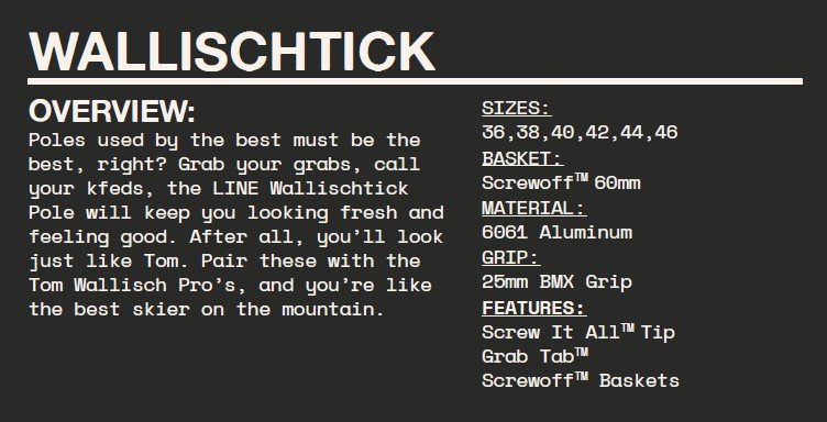 Hole, které používají ti nejlepší, musí být ty nejlepší, že? Chopte se svých holí, zavolejte svým kámošům, s holemi LINE Wallischtick budete vypadat svěže a cítit se dobře. Koneckonců, budete vypadat přesně jako Tom. Zkombinujte je s holemi Tom Wallisch Pro a budete jako nejlepší lyžař na horách.