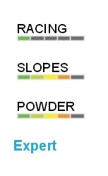 Skvělé a zábavné All Mountain lyže do jakýchkoliv podmínek, vyznačující se velkou stabilitou a flexibilitou. Dokonale nadnáší v prašanu, přitom mají skvělý carving na upravené sjezdovce. All Mountain sandwichová technologie. | |||||||||||||||