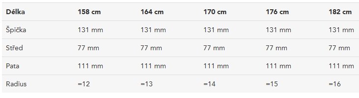 | Špička/střed/pata (v mm) ?: | viz tabulka v obrázcích (u délky v cm, je-li uvedena) |