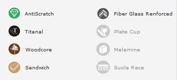 | Technologie ?: | Anti Scratch, Fiber Glass, Sandwich Tech, Titanal, WoodCore |