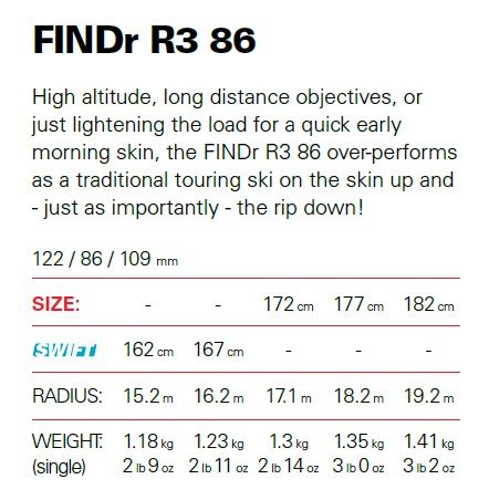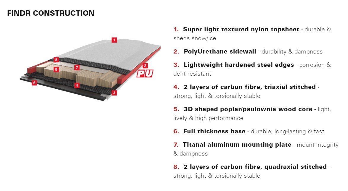 Vyrobeno tak, aby vynikalo ve skialpinistických aplikacích, v tvrdých a smíšených sněhových podmínkách a aby poskytovalo maximální kontrolu nad hranou, FINDr. má tradiční profil camber. Tato skutečná alpská touringová lyže obsahuje špičku s brzským stoupáním, která poskytuje lepší plutí v hlubokém sněhu.