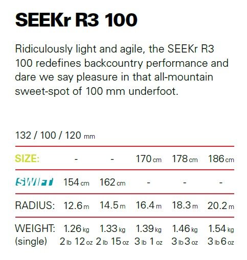 Specifikace lyží G3 SEEKr Swift R3 100: