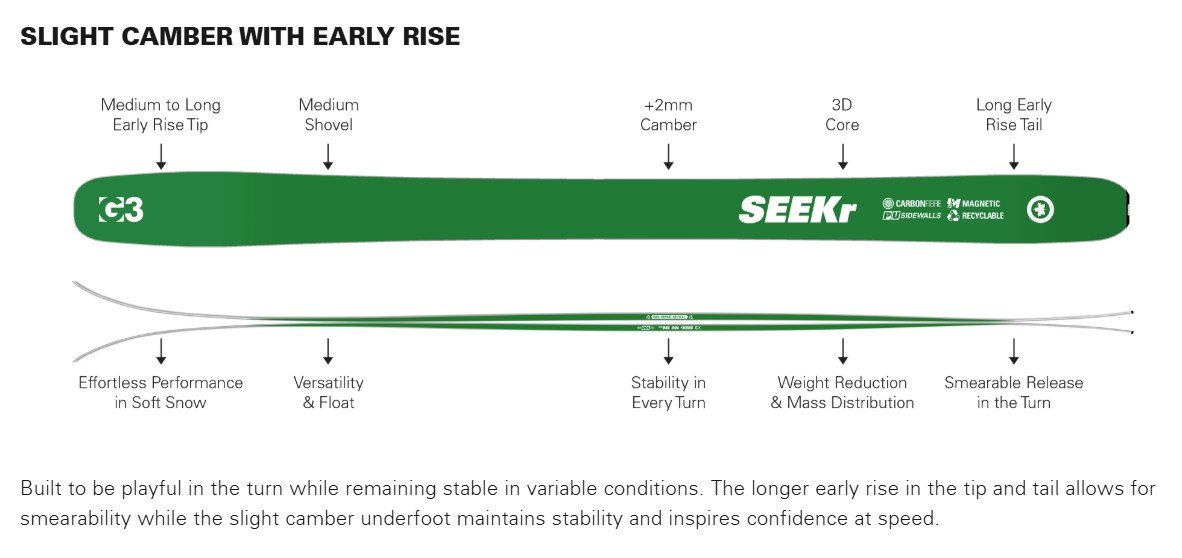 Lyže G3 SEEKr R3 100 jsou na svojí velikost velmi lehké, hravé a žádná vertikální překážka pro ně není problém. Ve stoupáních se vám bude zdát, že máte menší lyže a ve sjezdu budete nadšení. Nové lyže G3 R3 jsou 100% recyklovatelné, což znamená, že vaše lyže neskončí na skládce.