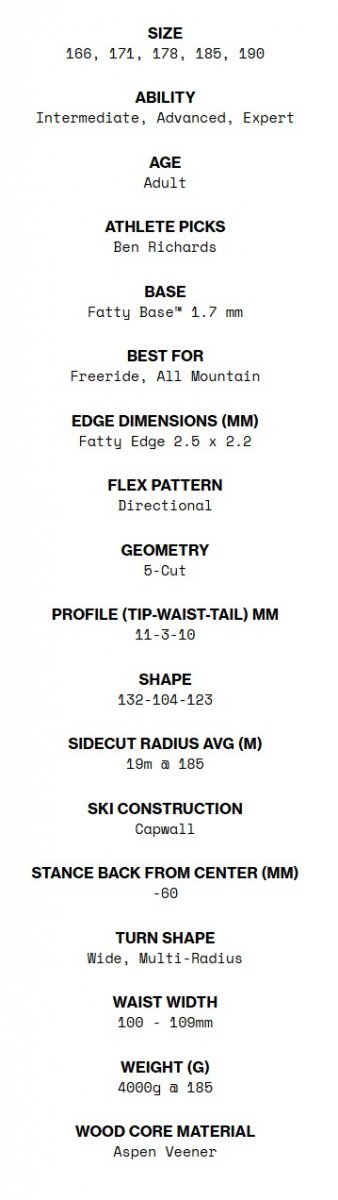 Technologie ?: | 5CUT™ MULTI-RADIUS SIDECUT, Aspen Veneer Core, Directional Flex™, Early Rise™, Fatty Base and Edge™, Fatty Base™ Sintered 1.7 mm, GAS PEDAL METAL, OVERDRIVE™, Sidewall Construction, Sintered Base™ |