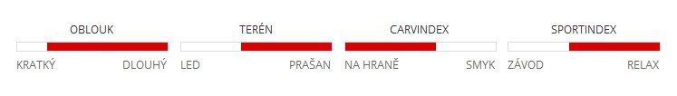 V těchto lyžích jsou použity dvě biaxiální prepregové nosné vrstvy a výztuha.