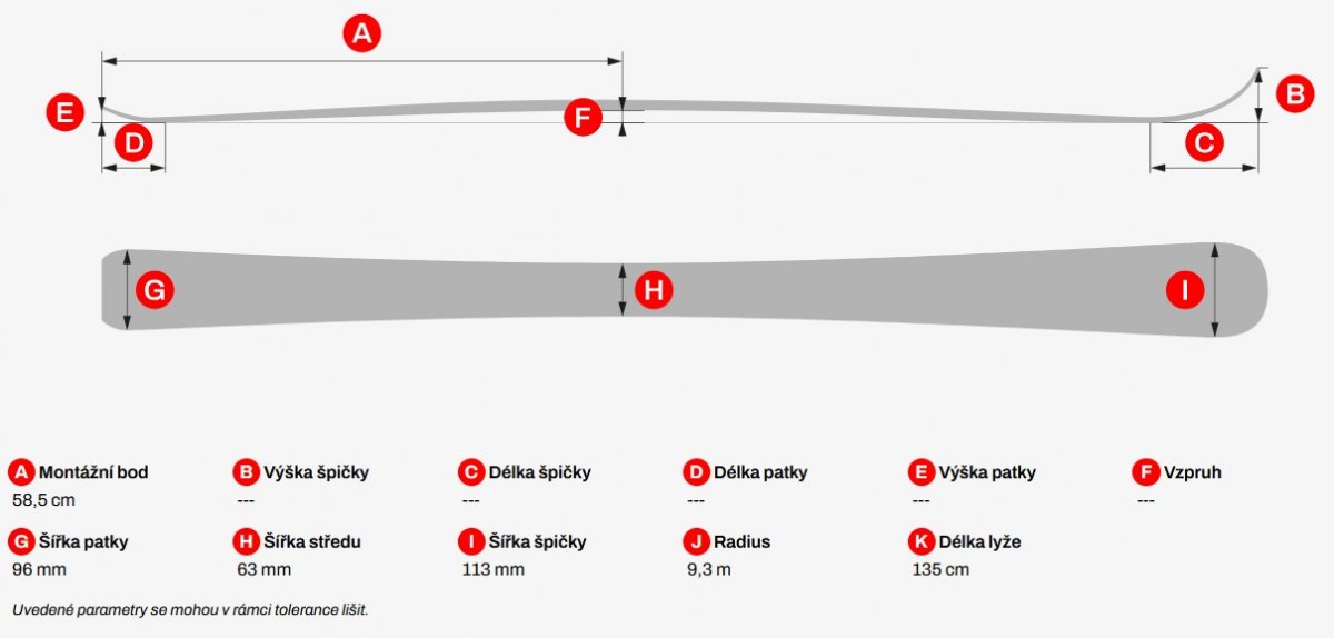 Technické parametry „Lusti FIS Junior Race SL + volitelně bez/s vázáním Vist VSP 310 + deska Vist Speedspacer / VM 311 + X-Step“