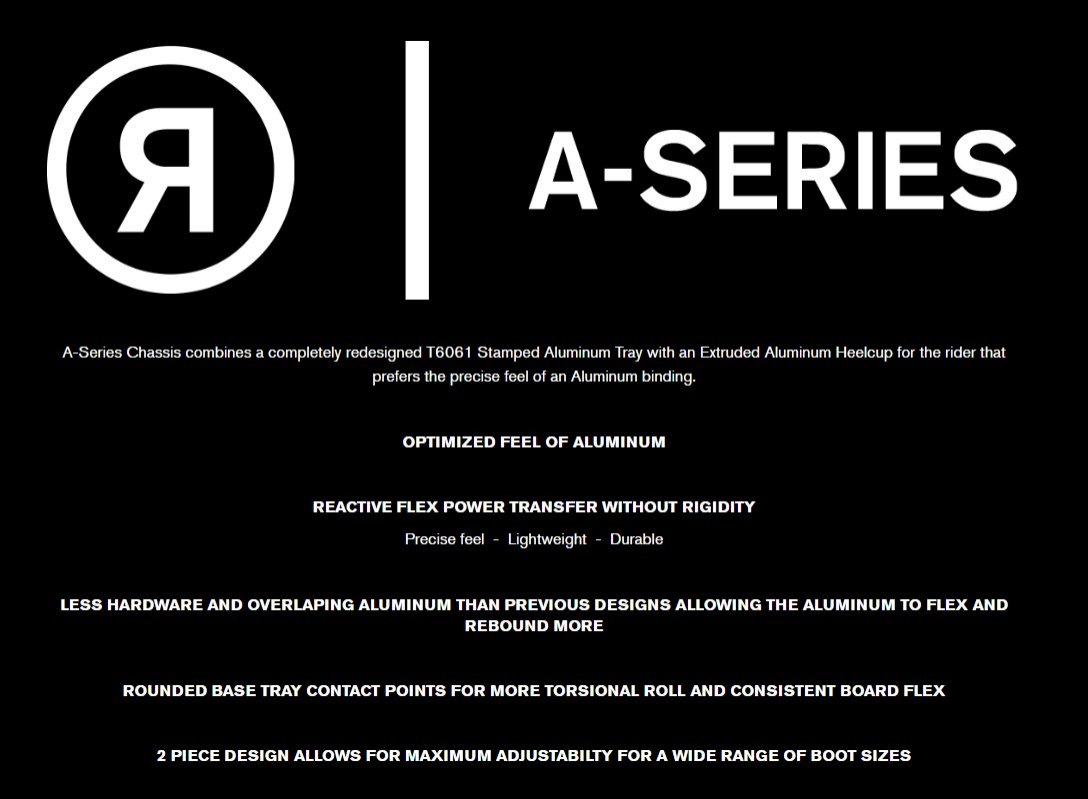 Chassis A-Series poskytuje reaktivní ohyb a přenos síly hliníku pod nohama. Extrudovaná hliníková pata poskytuje maximální odezvu paty. Chassis A-Series bylo navrženo tak, aby bylo méně tuhé než předchozí konstrukce, což umožnilo hliníku se více ohýbat pod váhou jezdce, což umožňuje mnohem reaktivnější jízdu. Protože šasi je 100% hliník, je užší než nylonové nebo plastové šasi, což umožňuje prknu volněji se ohýbat od špičky k patě.