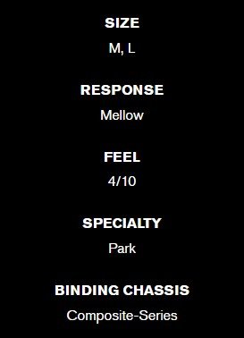 Ultralehká vložka vázání, na které stojí bota využívá drobné úhly k vyrovnání kotníků a kolen do přirozenější polohy. Úhel podložky také poskytuje potřebnou páku pro dosažení maximálnho popu prkna aniž by to ovlivnilo vaši preferovanou šířku postoje.