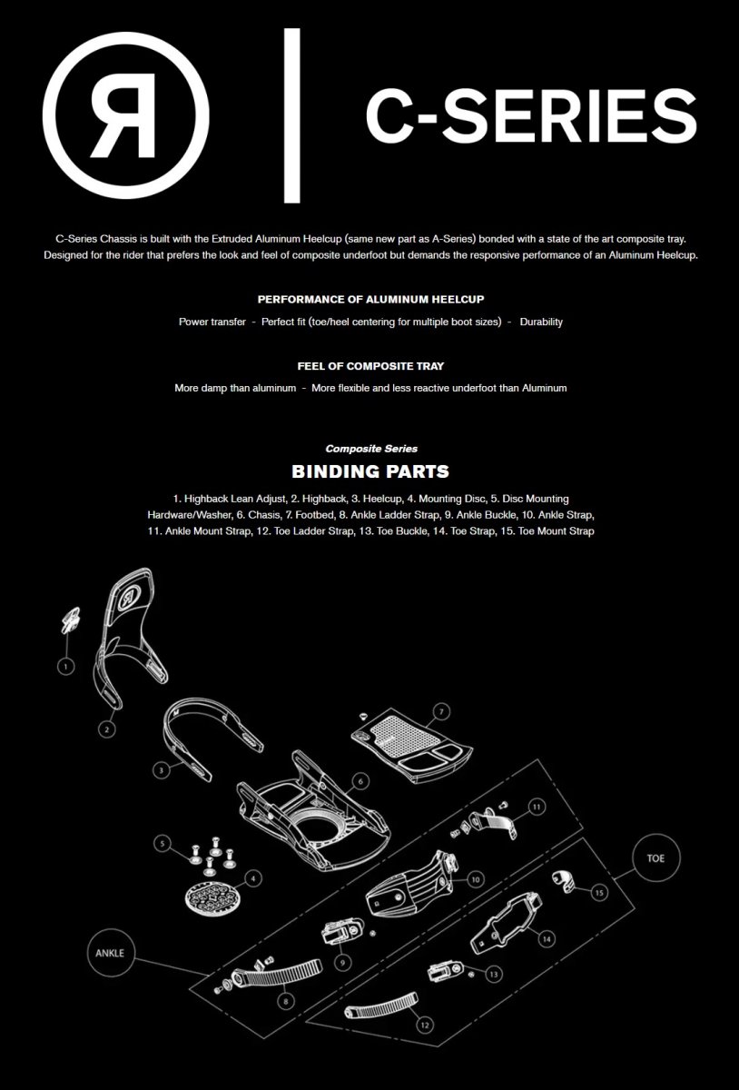Šasi C-Series spojuje podpatek z extrudovaného hliníku s polykarbonátovou základní vanou. Pata poskytuje maximální odezvu paty, zatímco polykarbonátová vložka pod nohama nabízí pohodlnou a hladkou jízdu.