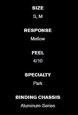 V době, kdy se mnoho našich konkurentů zaměřuje na gýčová, neohrabaná a přehnaně navržená vázání, která upřednostňují počet ohýbání se během jízdy před skutečným snowboardovým výkonem, představuje RIDE Specter. Nejlehčí a nejvýkonnější freestyle vázání, jaké kdy bylo vyrobeno. Specter jsme zjednodušili, abychom zajistili, že výkon je prioritou. Specter je postaven na našem hliníkovém podvozku řady A a nabízí nízkou a odolnou konstrukci s doživotní zárukou. Unikátní vlastnosti hliníku umožňují, aby se vázání ohýbalo spolu s vaším prknem a zajišťovalo dokonalý freestyle pocit. Optimalizovali jsme úhel a flexibilitu předního náklonu, aby byl ideální pro freestyle jízdu, a u nového plochého nylonového highbacku jsme eliminovali blok předního náklonu. Buďme upřímní, stejně byste si ho chtěli sundat, abyste ušetřili váhu. Zcela nový pásek na kotník používá uretanový materiál k vytvoření rámu se střední flexibilitou, polstrovaný měkčím materiálem pro lepší rozložení tlaku při utažení. Díky tomu je tento pásek jedním z nejpohodlnějších v řadě. Minimalistický pásek na prsty se vejde přes horní nebo přední část boty, aniž by přidával další váhu. Specter je 30 let dominance freestyle snowboardingu zdokonalená do své nejzákladnější podoby.
