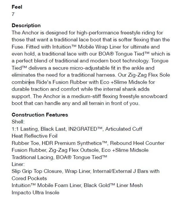 Konstrukční vlastnosti snowboardových bot Ride Anchor BOA: