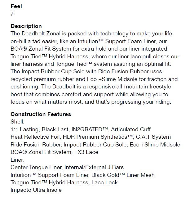 Konstrukční vlastnosti snowboardových bot Ride Deadbolt Zonal BOA: