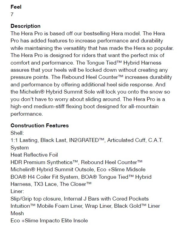 Konstrukční vlastnosti snowboardových bot Ride Hera Pro BOA: