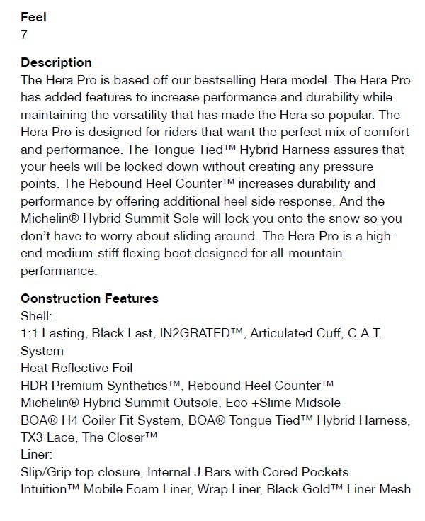 Konstrukční vlastnosti snowboardových bot Ride Hera Pro WIDE: