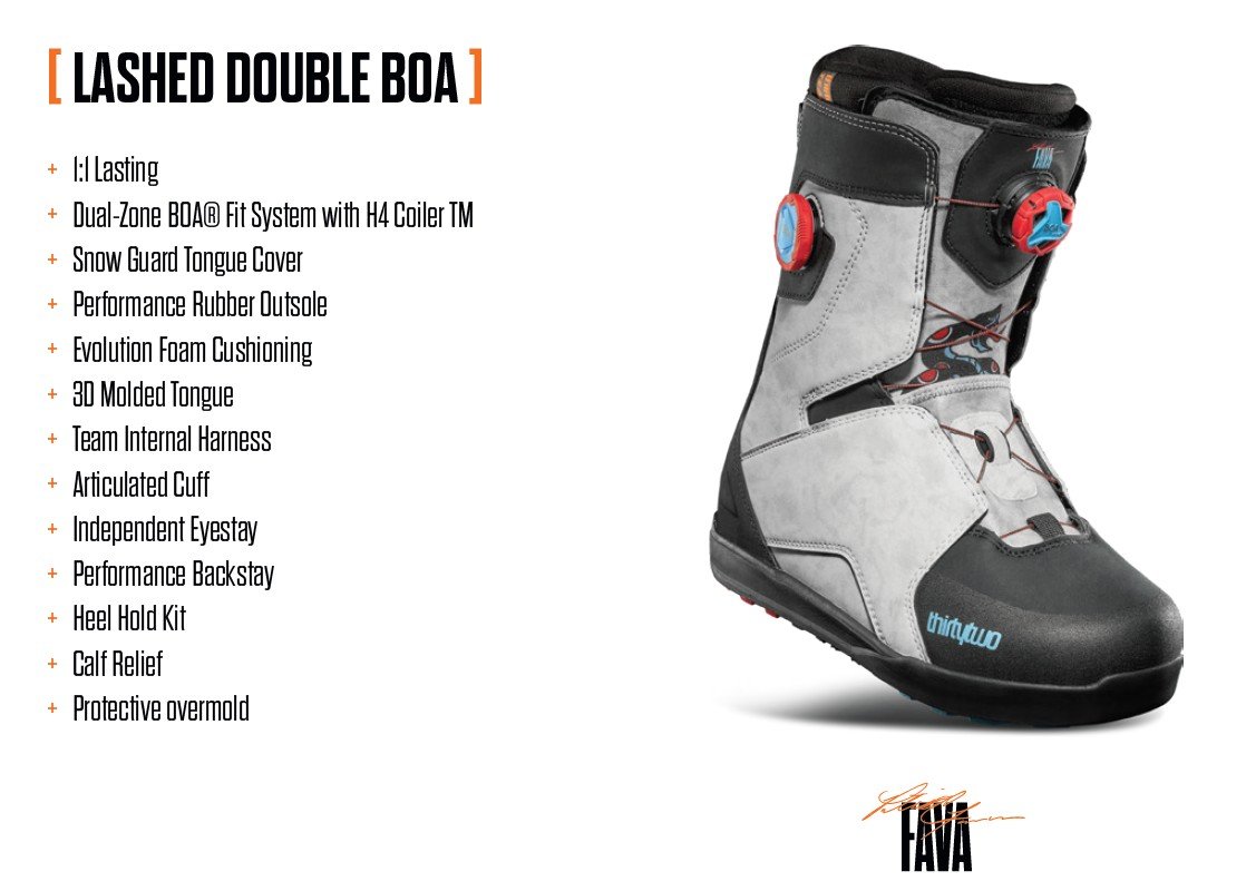 Technické detaily snowboardových bot ThirtyTwo Lashed Double BOA X Fava: