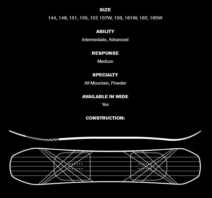 Navrženo pro jízdu jedním směrem. Více nos než patka, postoj posunutý vzad a odpovídající vykrojení. Dá se na něm stále jezdit jako na switchi? Ano, samozřejmě. Bude to tak dobré jezdit celý den jako na switchi? Pravděpodobně ne.