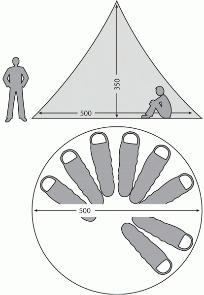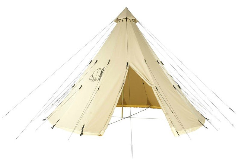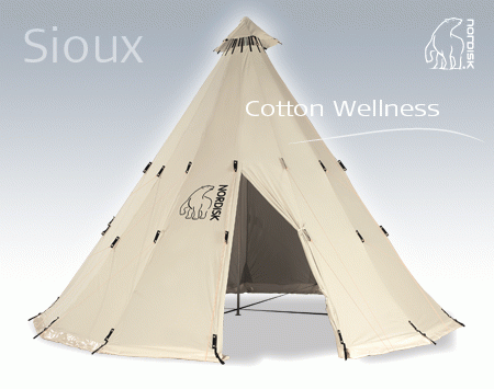 Velké táborové týpí s atypickou centrální ocelovou tyčí, snadno stavitelné a transportovatelné, možnost dokoupit podlážku. Plátno stanu poskytuje mimořádný komfort bydlení při horkém počasí.
